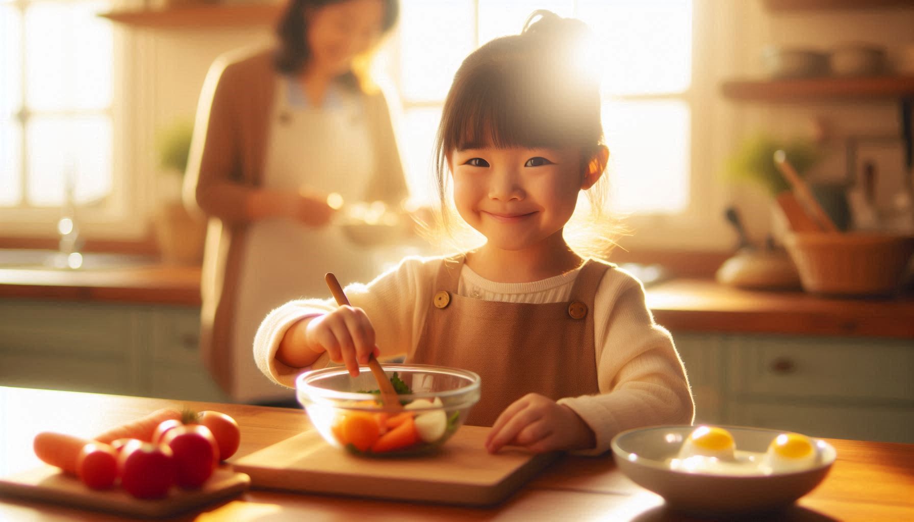 - 週末の「チャレンジクッキング」:子どもが自らメニューを考え、簡単な調理工程を担当する